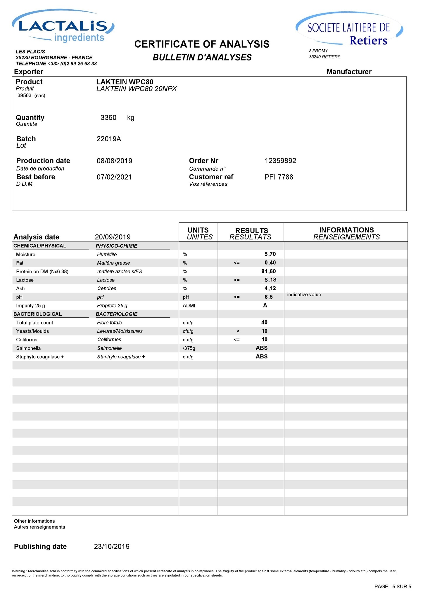 Ингредиенты продукта: Концентрат сывороточного белка LAKTEIN 80