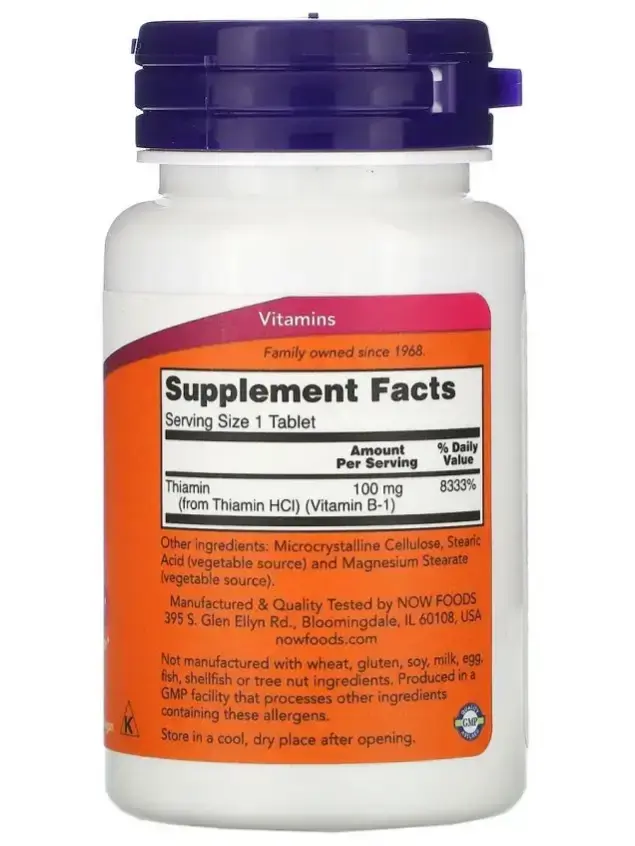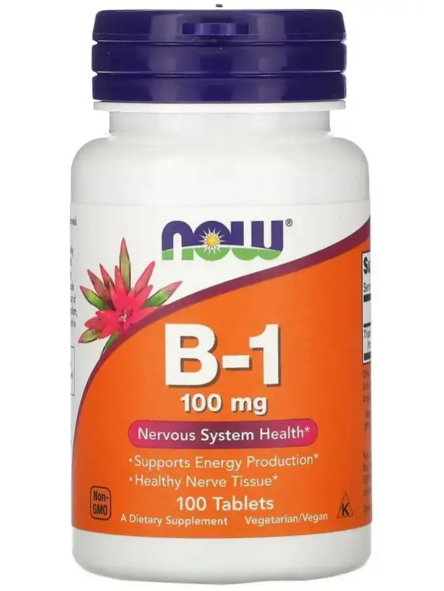 Now Foods Vitamin B 1 - также известный как тиамин, это важное питательное вещество. В качестве кофермента тиамин помогает организму усваивать углеводы и липиды и играет важную роль в нервной ткани. Каждая клетка организма требует витамин В1 в виде топлива.