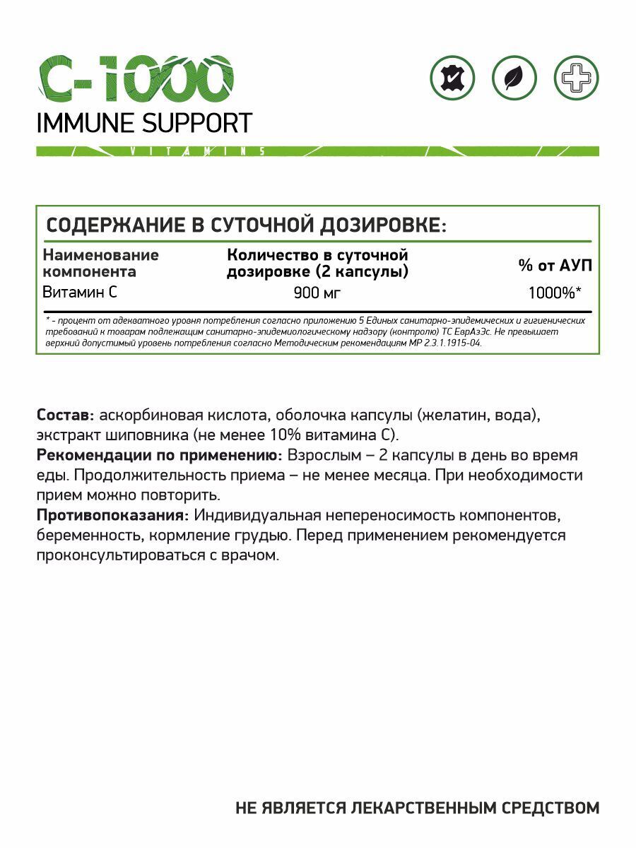 БАД С-1000 / Витамин С 60 капс. (Naturalsupp)