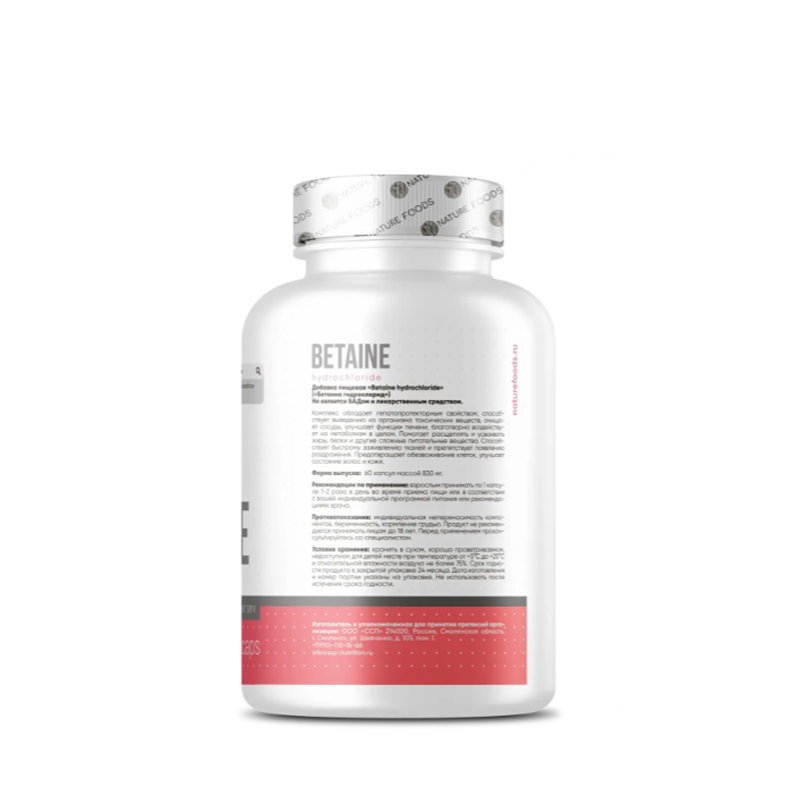 Бетаин от Nature Foods способствует сжиганию жиров, помогает прибавлять сухую мышечную массу и защищает мышцы от разрушения, увлажняет кожу и защищает её от дегидратации, придаёт коже гладкость и мягкость, устраняет раздражения. Упаковка: 60 капсул.