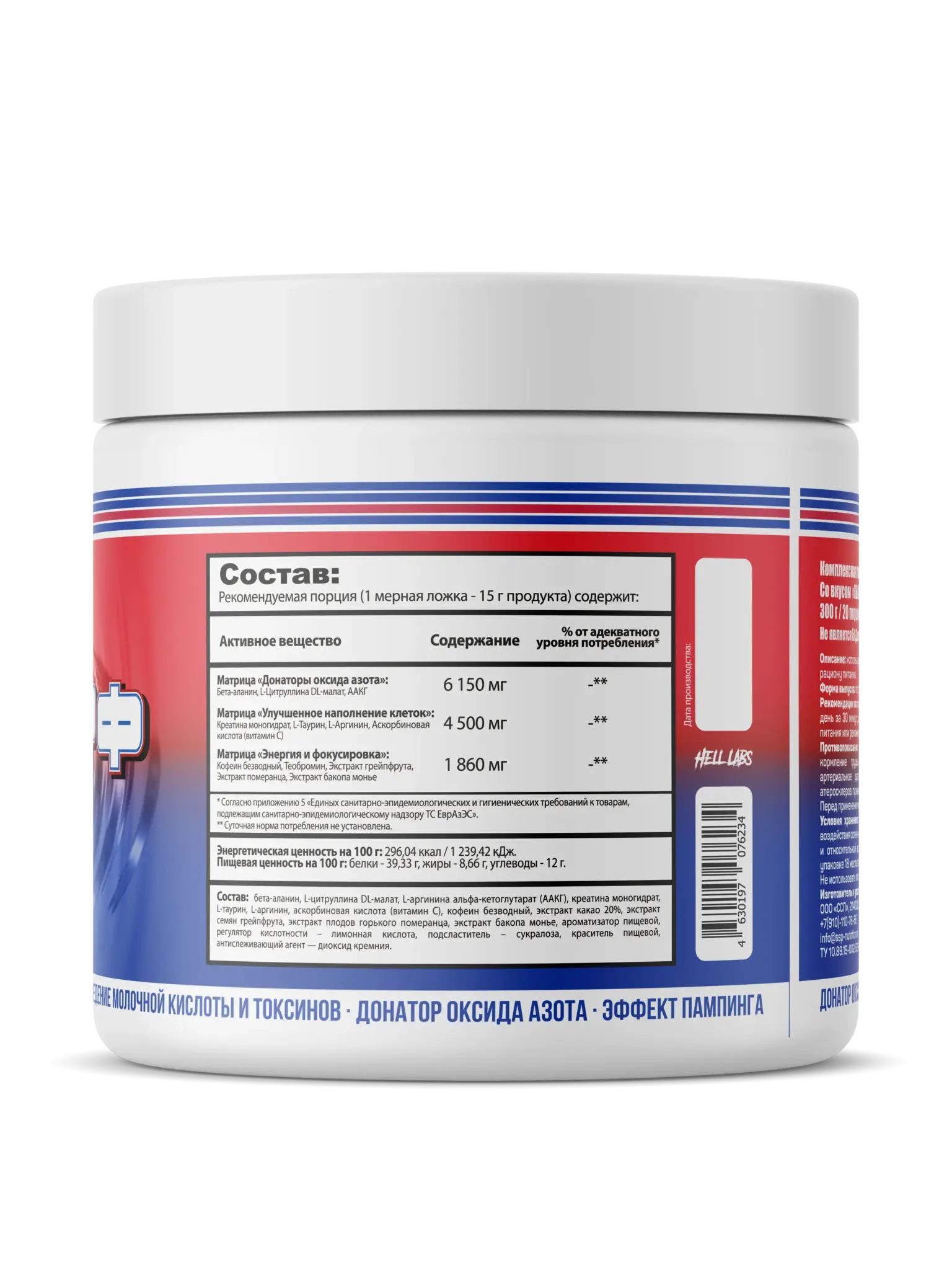 креатин моногидрат, L-таурин,L- Аргинин, аскорбиновая кислота, витамин С