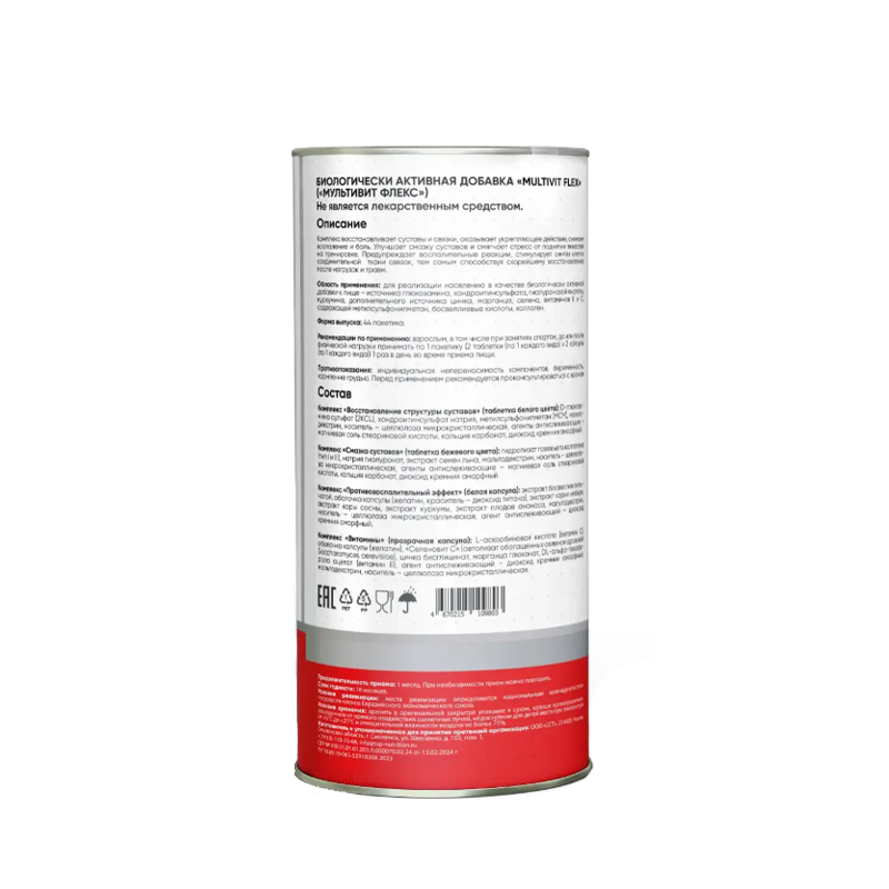 Комплекс «Восстановление структуры суставов» (таблетка белого цвета): глюкозамина сульфат, хондроитина сульфат, метилсульфонилметан (МСМ); наполнители - микрокристаллическая целлюлоза, крахмал; разрыхлитель - тальк; антислеживающие агенты - стеариновая кислота, диоксид кремния.