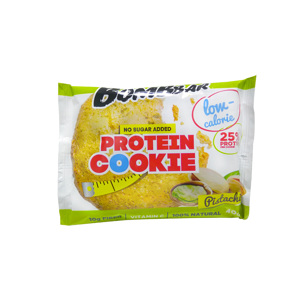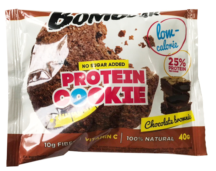 Низкокалорийное печенье Bombbar. Без сахара, без глютена, без консервантов, без красителей — полностью натуральный (не содержит ГМО). Не более 100 калорий на 1 порцию! Вес: 40гр.