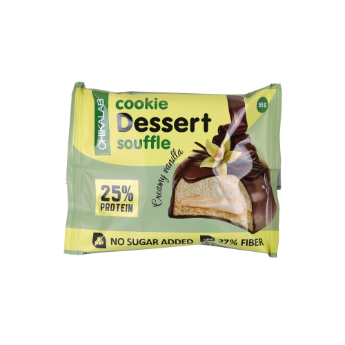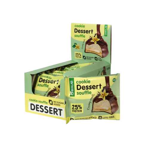 Протеиновое печенье без сахара с прослойкой из воздушного суфле и покрытое нежным молочным шоколадом без сахара! Это истинное удовольствие - десерт без сахара с порцией белка, клетчатки и натуральных начинок (какао, ягоды, сливки). Побалуйте себя полезным десертом без сахара, дополните ваш рацион необычным пп перекусом в виде суфле печенья от Chikalab!